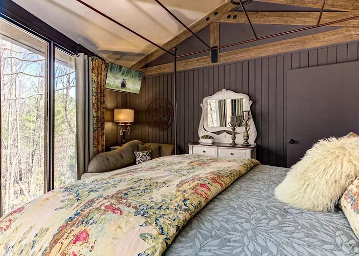 Situated a mere 6 minutes on foot from Big Canoe Chapel, the 2-bedroom Treehouse Of Life - Access Community Extras Like Pools Golf Lakes Waterfalls Trails Marble Hill villa features a terrace with views of the mountain.